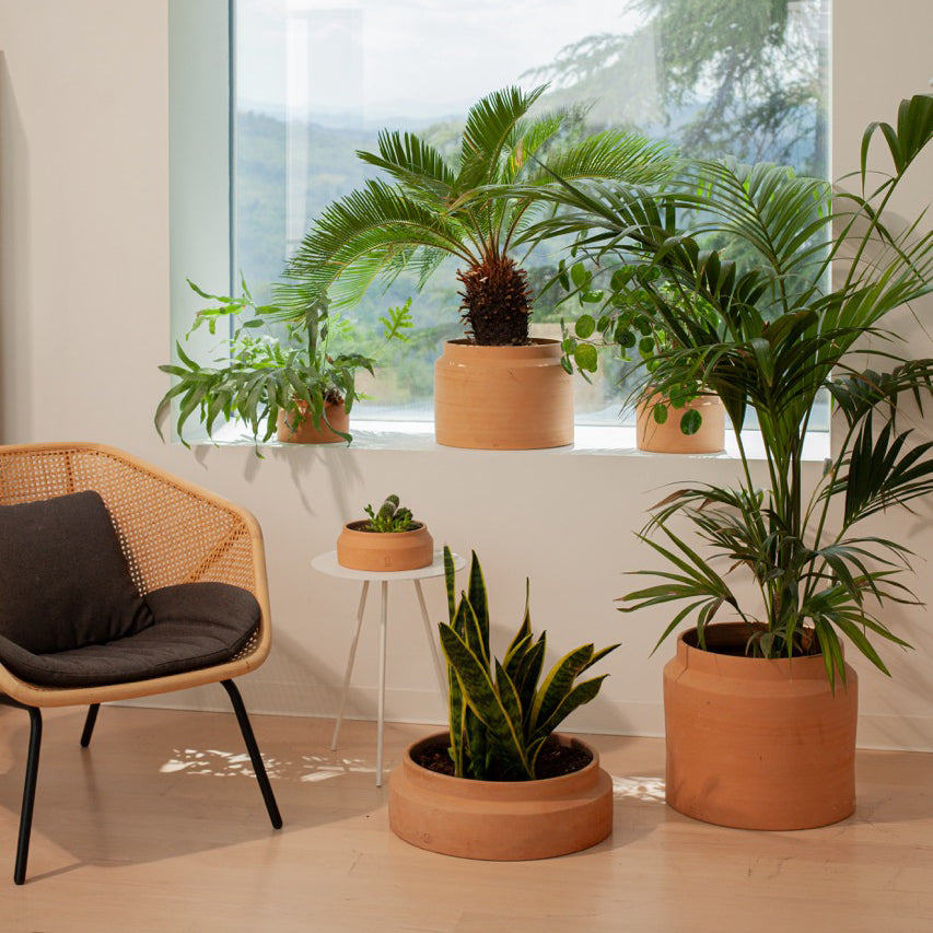 Wood, a raw material that defies time and projects us into the relaxing atmospheres of the plant world; terracotta, whose rough beauty complements any context with a touch of materiality and elegance; glass, a precious resource that comes from sand and returns to sand, preserving the ecosystem; and metals, versatile, recyclable, protective, and resistant to corrosion.